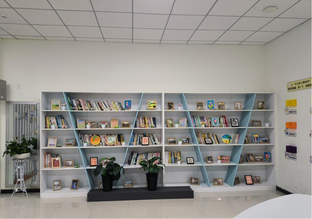 原本静谧的阅读区,如今增添了更多灵动气息。书架上摆放着一幅幅精致的黏土画,色彩柔和、造型生动,每一幅都蕴含着创作者的巧思与温度;角落错落有致地摆放着小巧玲珑的花瓶,或插干花,或养绿植,为这片书香天地注入了自然的生机与诗意。在这里,你可以捧一本心理读物,在艺术与自然的陪伴中,享受一段安然的自我疗愈时光。
