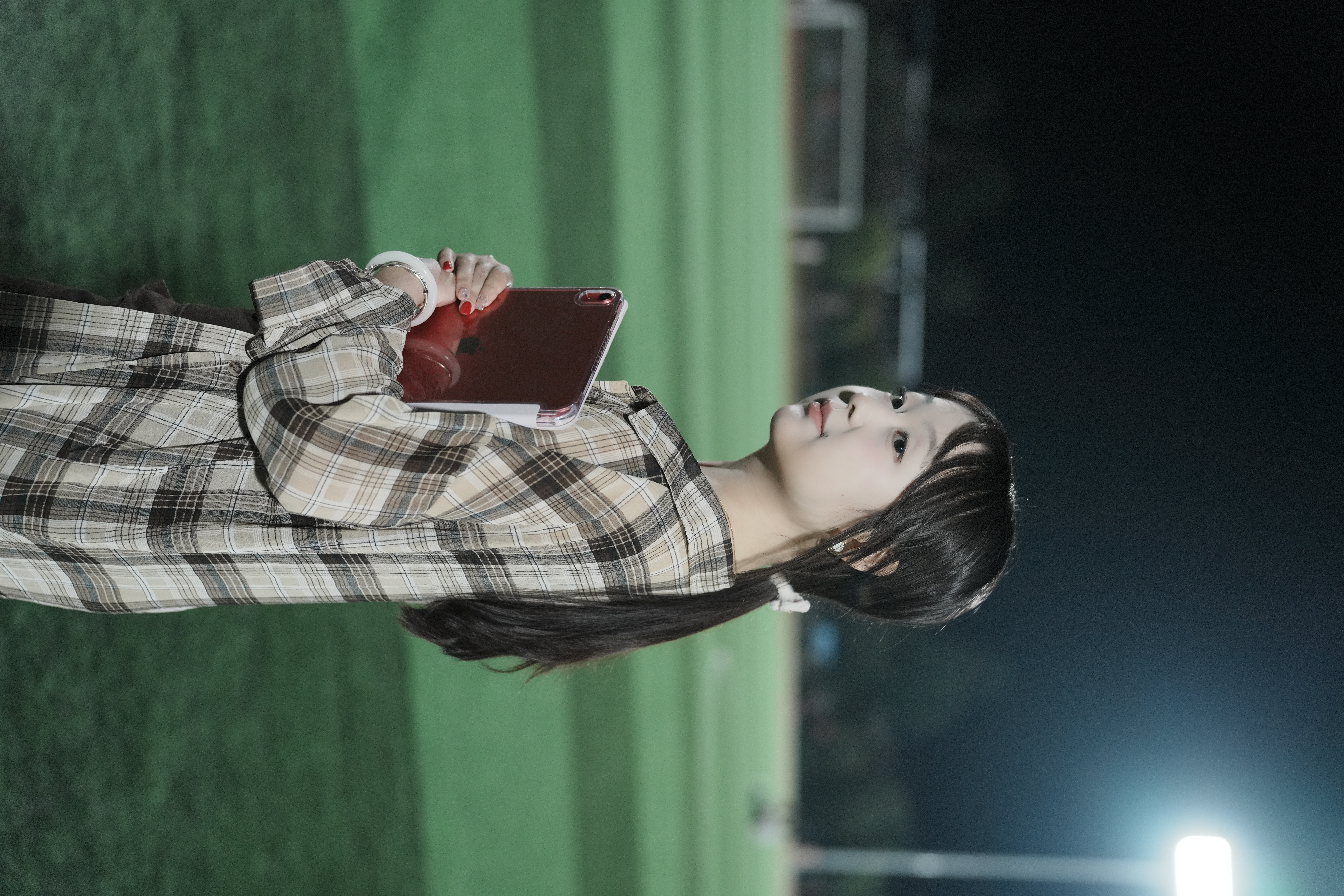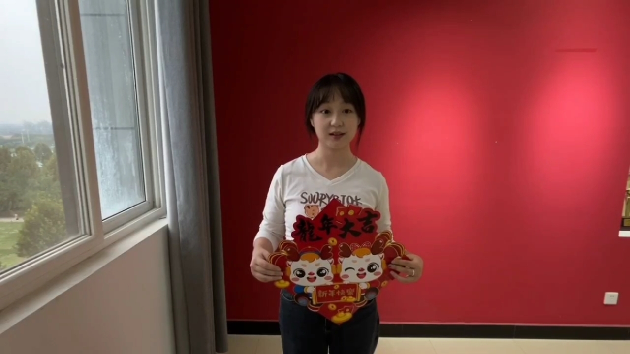 她身着汉服立于古建前,怀抱“长安月”灯笼,暖黄光影勾勒出沉静侧影。这份与传统对话的从容,恰是文化自信的生动注脚。无论在何种场景,她都能保持独特的节奏。新年红墙前,她手捧“龍年大吉”贺卡,白衣上的卡通图案与红色背景碰撞出俏皮生机,窗外绿意悄然入画。从汉服到常服,从古建到商场,从夜色操场到节日现场,这位国奖获得者用不同场景下的自然姿态,诠释着当代优秀青年的多维度成长。她不刻意张扬,却在每个平凡时刻都活出最本真的模样——这种无需修饰的从容,恰是最高级的自信。