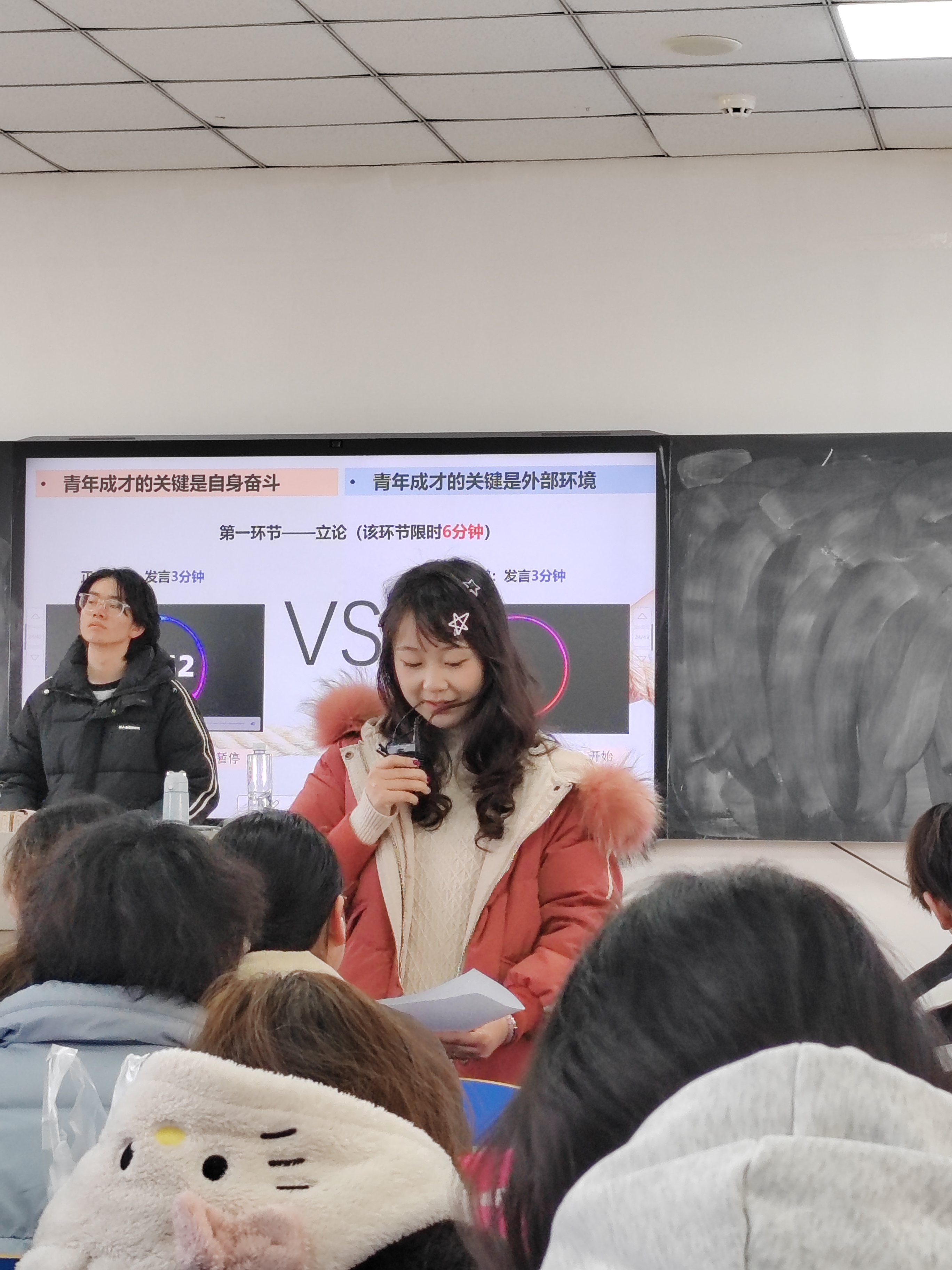 辩论赛的聚光灯下,她作为辩手站在“青年成才的关键”立论环节,红色外套映衬着从容自信的姿态。三分钟限时陈述里,清晰的逻辑与流畅的表达,让人看到她将广泛兴趣内化为综合素养的成果。而在学习室的讨论区,她与同学俯身共探学术难题,指尖划过书页的动作与运动场上的挥拍形成奇妙呼应——这些看似无关的场景,实则共同构建了她多元发展的成长图谱。